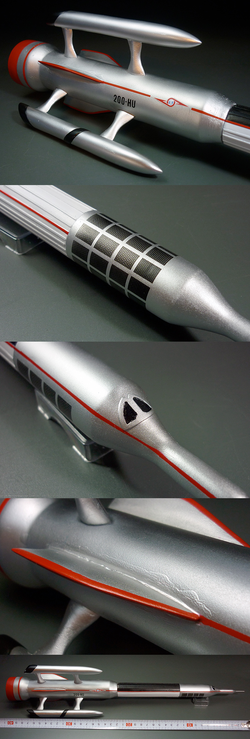 ★沸騰した鍋で煮込みパーツのゆがみを取りました。★塗装工程:下地処理→サーフェイサー→中研ぎ→シルバー→ウレタンクリヤーコート(砂吹き)★カラーはガイヤカラーを使用しています。★機首先端に金属線を埋込みディテールアップしています。