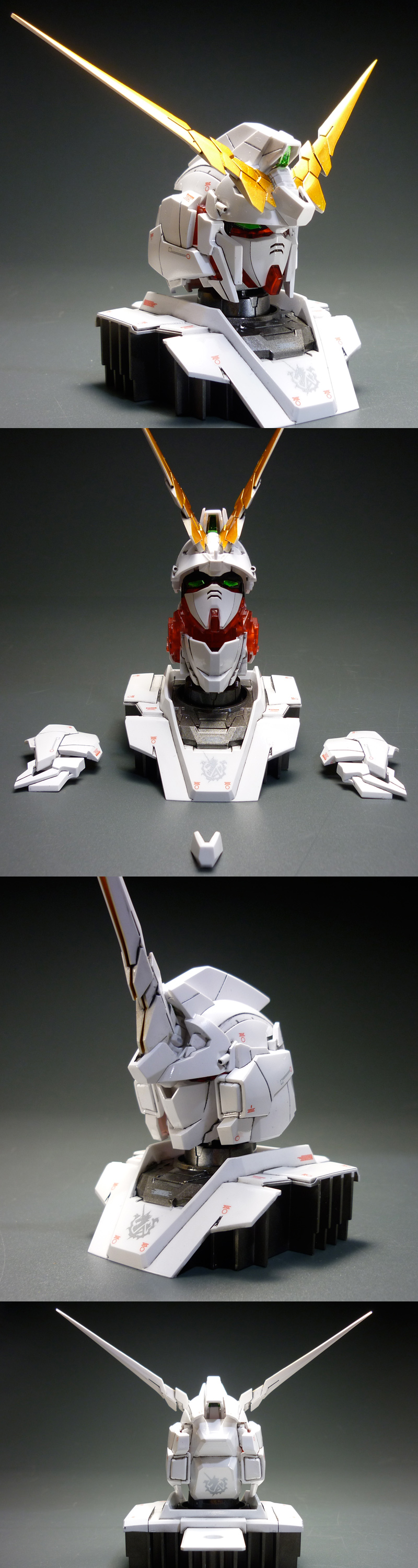 | ・電撃ホビーマガジン1月号 特別付録のユニコーンガンダムヘッドディスプレイの塗装完成品になります。 ・ユニコーン、デストロイフェイスへ変形可能です。 |