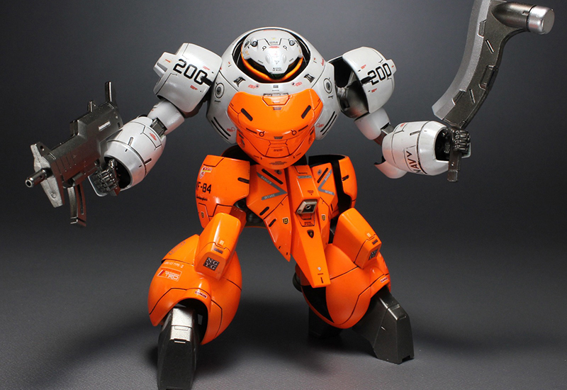 ★オプションセット9の足を付けました。★足と腕パーツは合せ目処理をしています。 ★デカールはストックからテキトウにチョイス。雰囲気で貼りました。 ★ホワイトにはダイヤモンドシルバーでパールコート。オレンジは蛍光オレンジです。 ★デカール貼り後にウレタンクリアーでオーバーコート。グロス仕上げです。