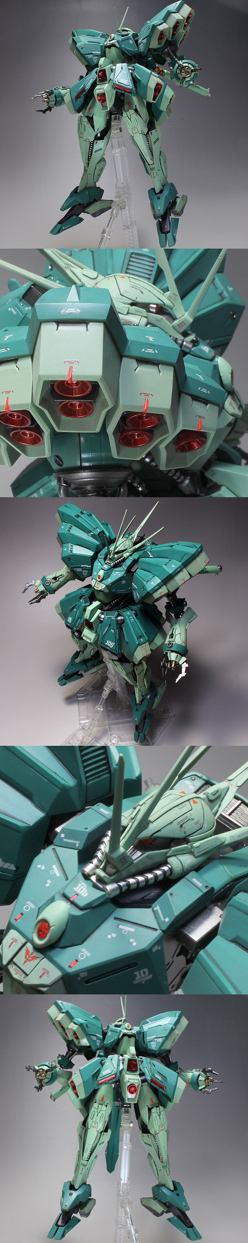 ★ディテールアップはスジボリ、プラ板・プラ棒貼り、ストックパーツ取り付け。細部の金属色にもこだわりました。コーションデカールはおそらく100ヶ所以上貼りました。レッドポイントとメタルパーツも埋め込みました。 ★カラーリングはイエローをオミットしてEXシルバー+スミ入れ。グリーンをブルー系に変更。レッドをキャンディ塗装。