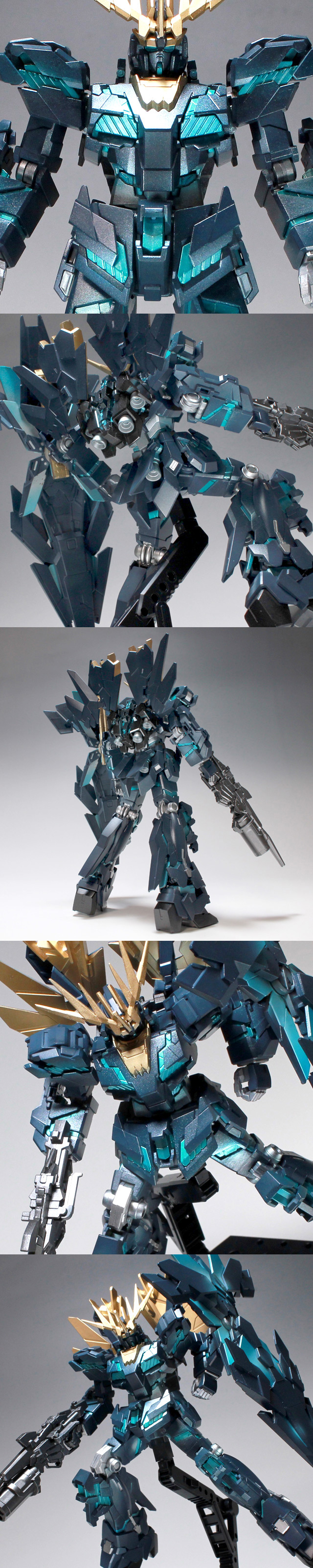 ★バンダイ製のHGUCシリーズ バンシィを組立塗装した完成品です。★キットサイズ1/144(背中に装着したシールドまで約205mm) |