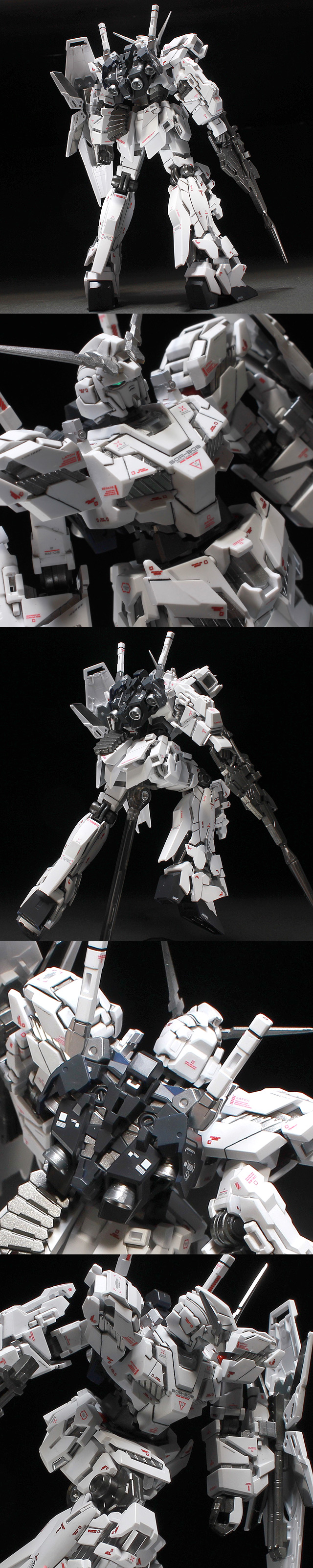 ★なくした両肩のフレームパーツを追加し、再度撮影しました。他は同じです。 ★デストロイモードのレッドパーツをシルバーに変更。 ★装甲は白に近いグレーを塗装。★コーションデカールをたくさん貼っています。 ★アンテナ(角)をシャープ化。