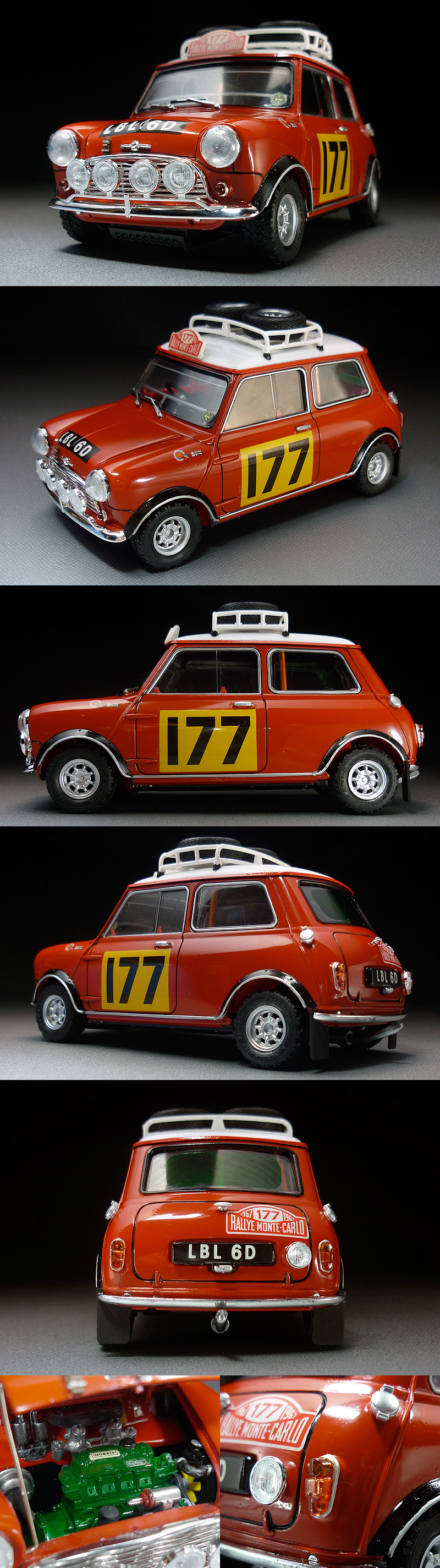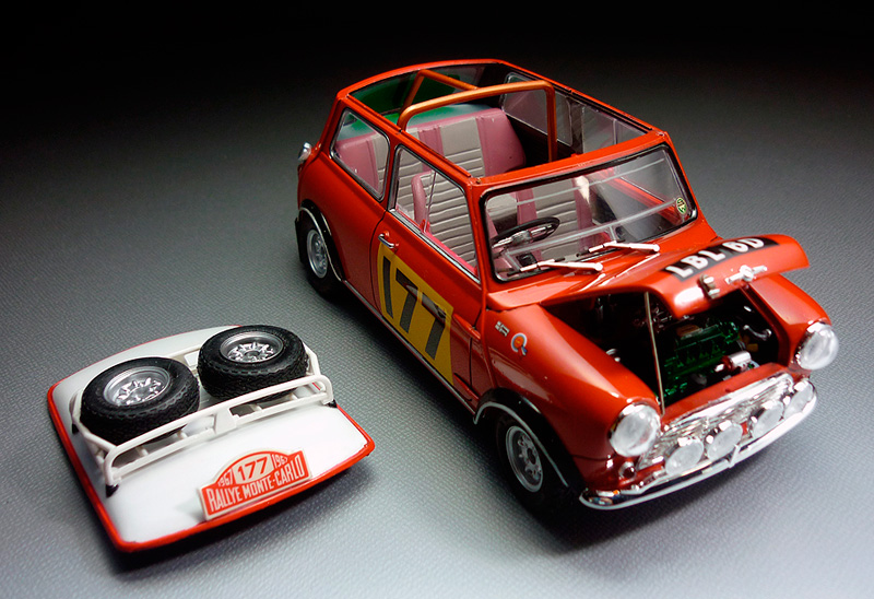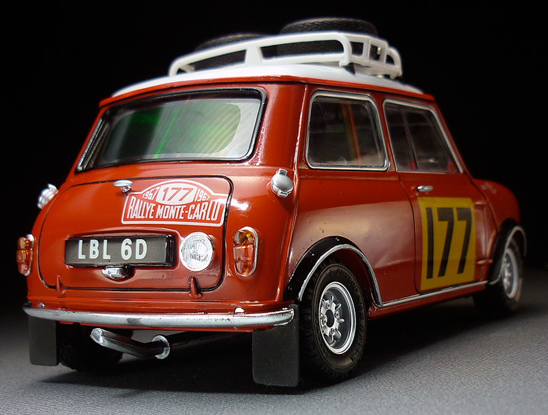 | ★タミヤ製キット MORRIS ミニクーパー 1275S ラリーを組立塗装した完成品です。 ★キットサイズ※(約):幅65mm×長130mm×高75mm★付属品:元箱、組立説明書、自作ボンネットステー。 |