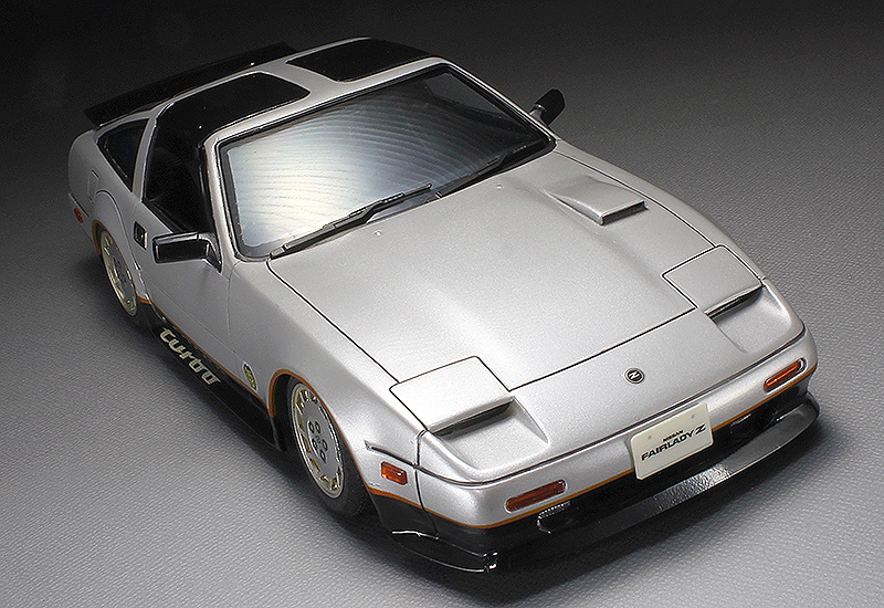 ★Z31の50thアニバーサリーを参考にデカールを自作し製作しました。 ★ホイールナットのデカール(自作)を貼りました。 ★ローダウン、フロントとサイドにスポイラー追加。★ボンネットにエアーインテーク追加。 ★リアオーバーフェンダーにラインを追加。★リアバンパー・ブレーキランプ等周辺を改修。 ★フロントタイヤはスペーサーを入れてトレッドを調整しました。 ★ウィンドウパーツに薄くクリヤーブルーのスモークを吹き付けました。 ★各所ライト部裏にミラーテープで裏打ちしました。光を反射して輝きます。 ★内装・シャーシボトムはつや消しブラックを塗装しました。 ★内装はセミグロスブラックで塗装しました。★Tバールーフは脱着可能です。 ★オーバーコートはMr.カラー GX GX100 スーパークリアー3を使用しました。 ★研出し(ペーパー1000~2000)後→タミヤコンパウンド(3種)→セラミックコンパウンド ★ツヤ出し:コーティングポリマー→モデリングワックスの鏡面仕上げです。 ★非常に綺麗なツヤが出ております。★タイヤ回転、舵取り可能です。 |