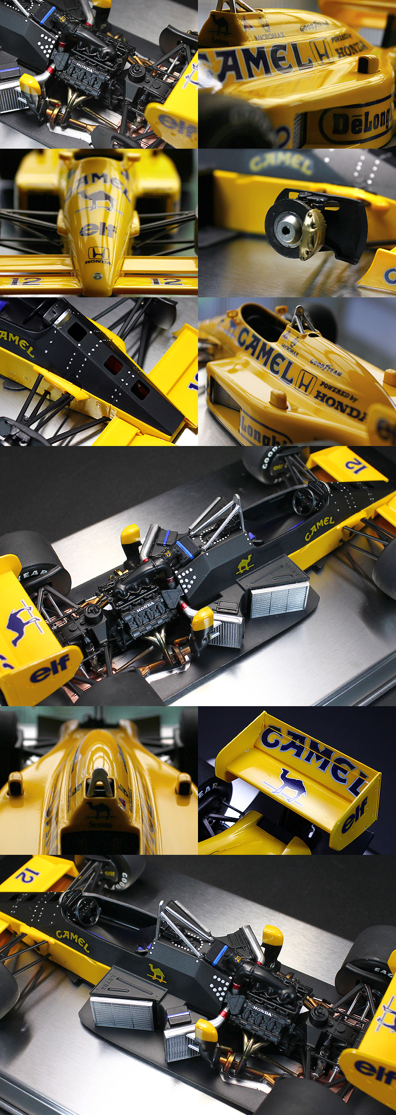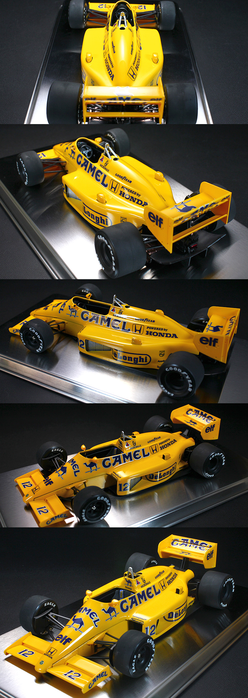 | ★タミヤ製プラスチックキットの完成品です。★キットサイズ1/20(約)長210mm、幅110mm、高50mm ★1987年のF1グランプリで活躍したマシンです。★ドライバーはアイルトン・セナと中嶋悟。★A.セナがモナコGPとデトロイトGPに2連勝、この年から初のF1レギュラードライバーとなった中嶋もイギリスGPで4位に食い込むなど、性能の高さを示したのです。 ★付属品:元箱、組立説明書 ※撮影のための台座(金属)は付属しません。 |