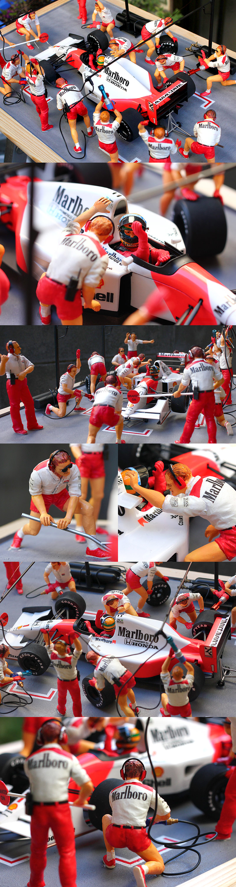 ★タイヤチェンジピットクルーキット(7名)を2セット使い手足や顔を付け替えてポーズを変えて14名製作。 |