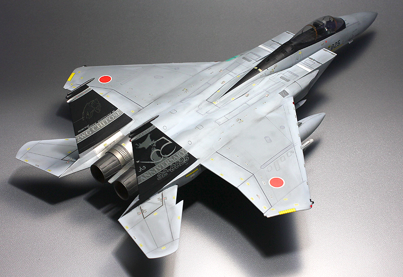 ★フジミ1/48 F-15J イーグル 航空自衛隊 千歳基地 第203飛行隊 自衛隊創立50周年記念塗装機 ★フジミ製のプラスチックキットを組立塗装した完成品です。 ★キットサイズ(約mm):長410×幅280×高130。 ★付属品:組立説明書、ハシゴ、誘導員、キャノピーポール