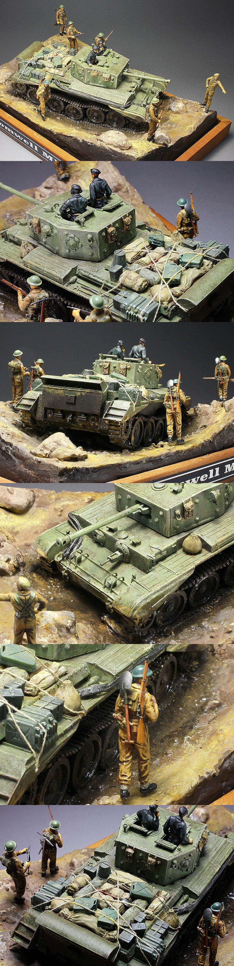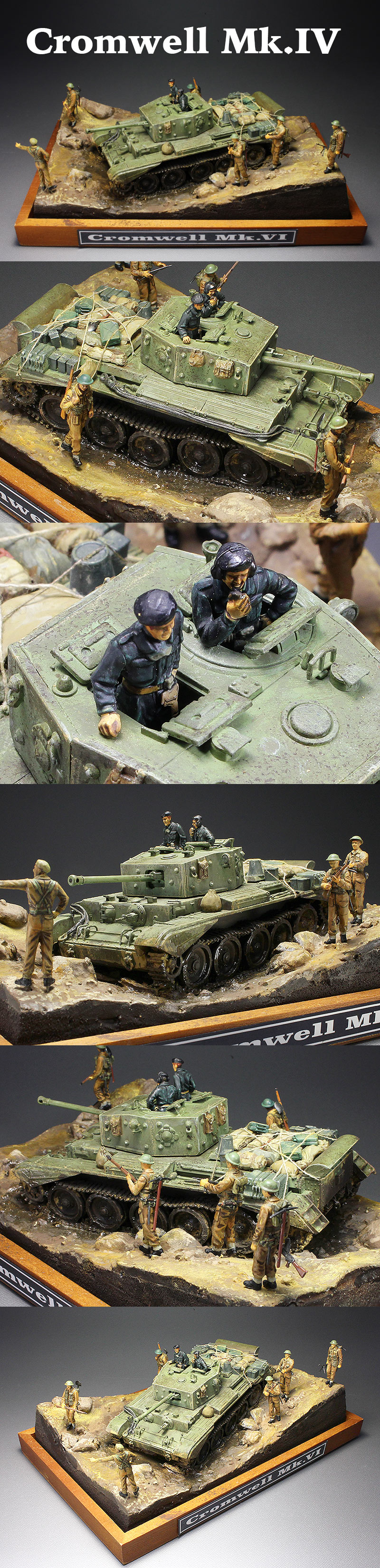 ★タミヤ製のイギリス巡航戦車 クロムウェルMk.IVを組立塗装した完成品です。 ★キットサイズ1/48:ビネットセット寸法:L220×W140×H80 ★付属品:戦車組立説明書、フィギュア8体、ビネット(※元箱ありません)