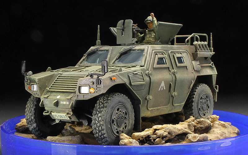 ★タミヤ製の陸上自衛隊 軽装甲機動車を組立塗装した完成品です。 ★キットサイズ1/48:全長全長=93mm ★付属品:本体元箱、組立説明書、フィギュア、ビネット。 ★ビネットの下のクリアーのプラスチックは、サラダやフルーツを保管するための容器(ツイストポット)のフタです。容器をかぶせるとまるでスノードームの様でお洒落です。更に持ち運びにも便利。